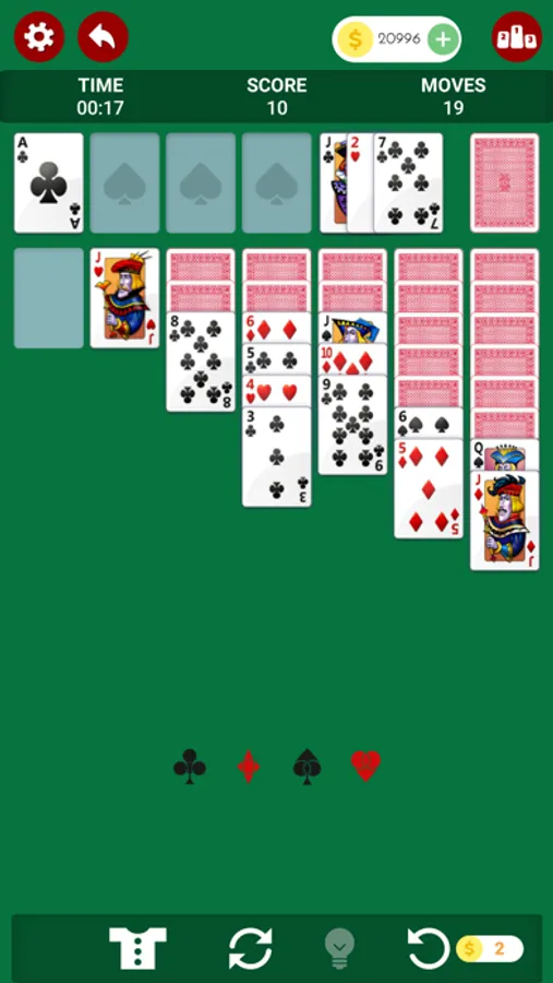 2. The objective of this free solitaire card games is to create four piles of solitaire cards - one per solitaire suit in ascending order. Beginning with Ace and ending with King.
