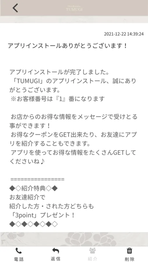 TUMUGIのアプリをSNSを通じてお友達に紹介する事ができます。