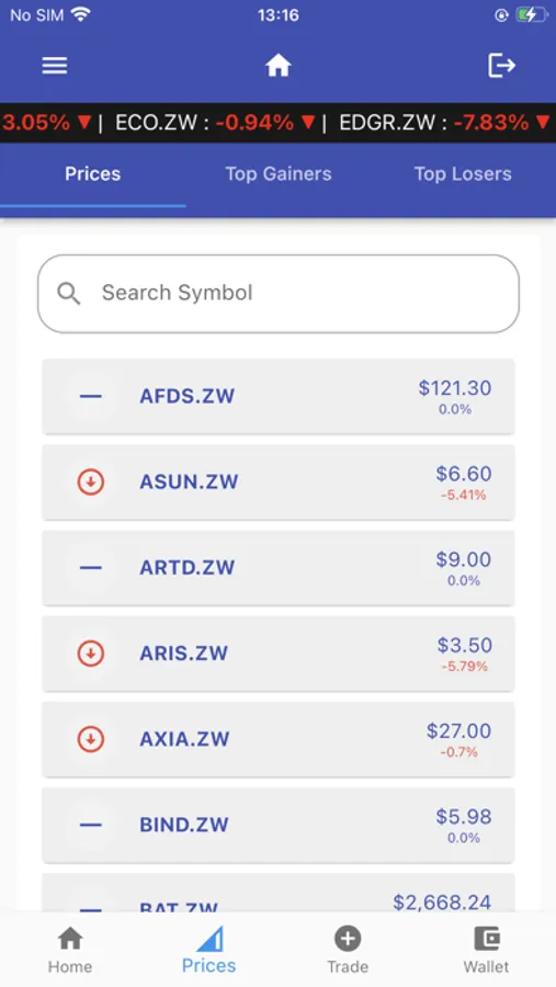 - View the Market statistics that include Top Gainers and Losers, Price sheet