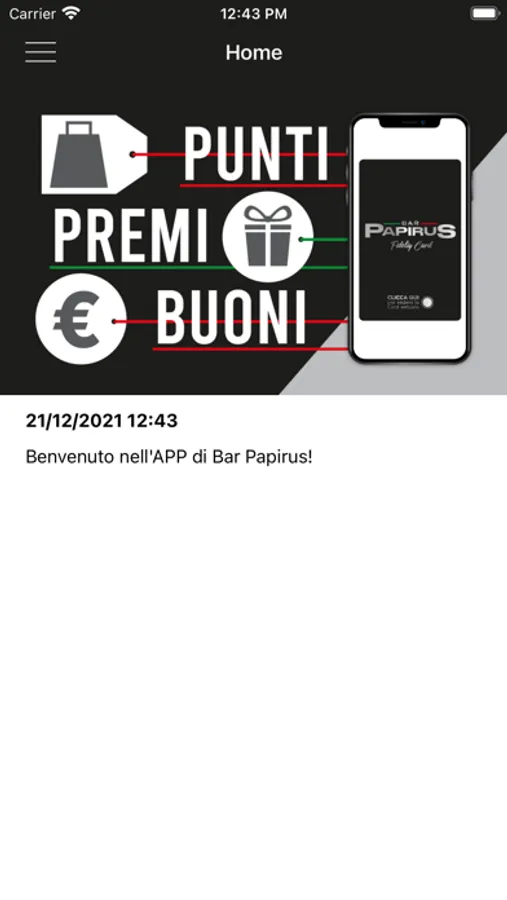 La fidelity card di Bar Papirus premia i propri clienti. Scarica l'app, registrati e potrai risparmiare con la nostra raccolta punti.