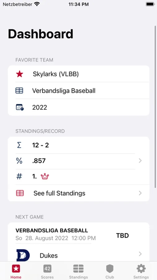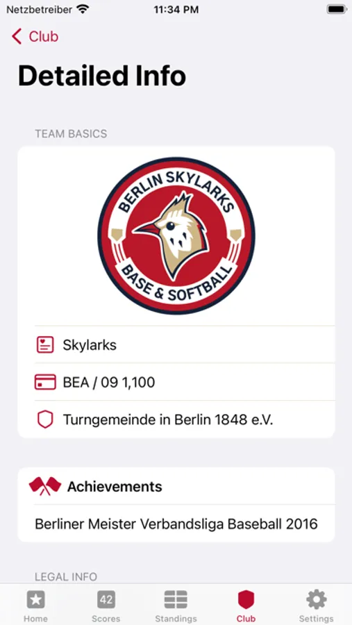 - Display standings for any Berlin/Brandenburg or national league where the Skylarks participate