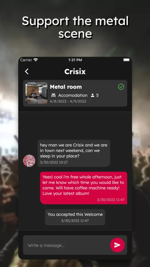 Welcome Metal App connects Metal Artists on tour with Metal Fans all over the world. Provide them a place to sleep, a meal, or take them to the best museums in your town. Bringing the digital world to Metal Community. Register now and make Metal Scene stronger.