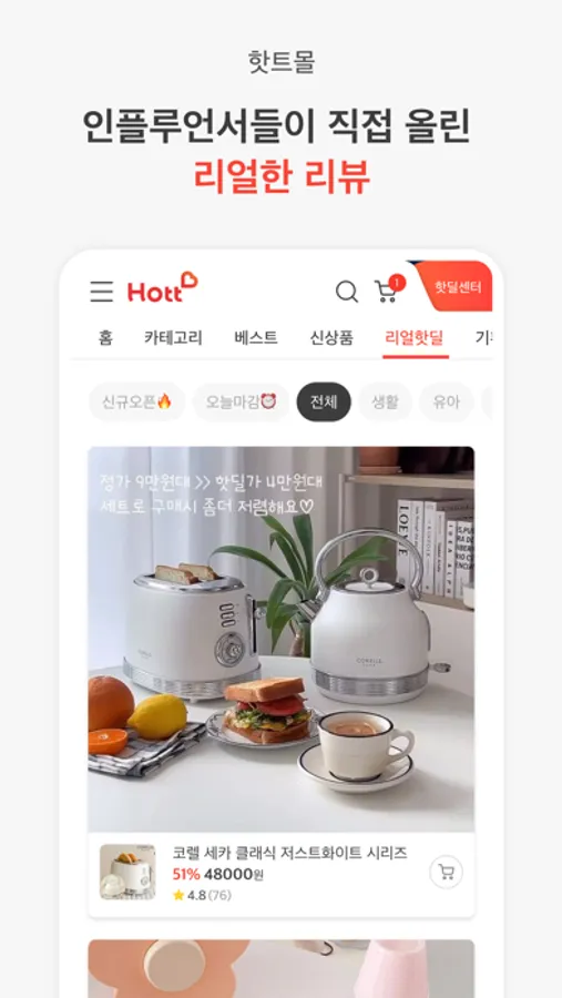 SNS 공구, 믿고 살 수 있어요! 핫트 인플루언서는 직접 써보고 검증한 제품만 리뷰하고 판매해요.