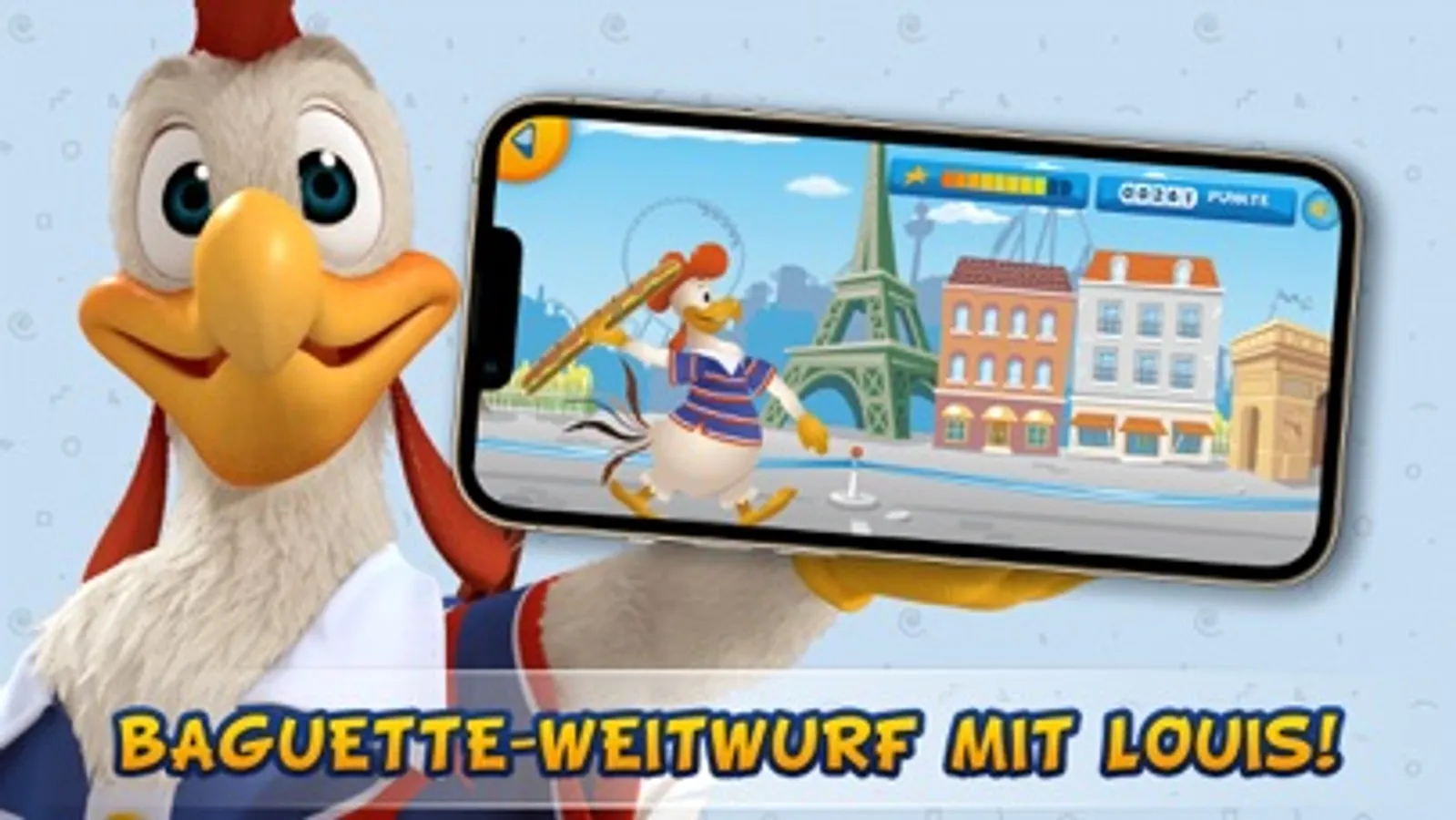 Kannst du den Rekord brechen? Dann lass die Baguettes durch die Luft fliegen und zeig Louis, dem französischen Hahn und Freund von Ed Euromaus, wie weit du werfen kannst. Los geht’s!