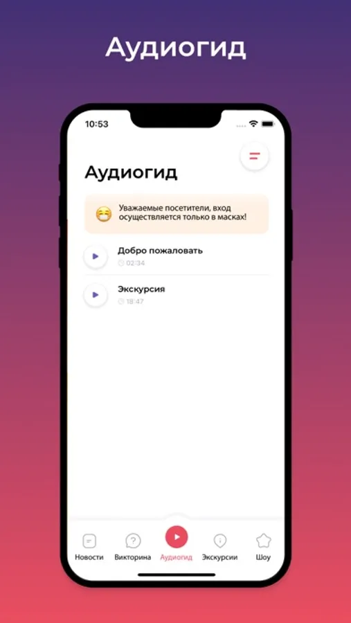 Приложение «Макет Москвы» — это дополняющая выставку информационно-развлекательная среда, которая дает возможность гостям макета Москвы воспользоваться цифровыми услугами и интеллектуальными сервисами. В приложении доступен аудиогид, который проведет для вас индивидуальную экскурсию по макету, вам будет доступна информация о графике работы макета, расписании проводимых экскурсий и световых шоу. Посетители макета Москвы с помощью приложения могут принять участие в интеллектуальной викторине «Узнай Москву» и при желании оставить отзыв о своих впечатлениях.