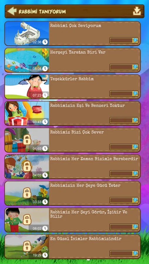 - Rabbimi çok seviyorum bölümü ile Rabbimizin bizi ne kadar sevdiği, Rabbimizin isimleri, her şeyi yaratan yaratıcının Rabbimiz olduğu, Rabbimizin her şeye gücü yettiği konuları ve daha fazlası bilgilendirici ve eğitici videolar ile uygulamada mevcuttur.