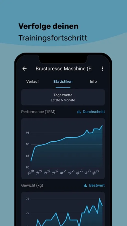 Dank der Diagramme kannst du deine Entwicklung genau beobachten.