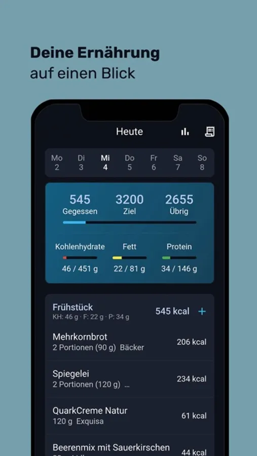 - Tracke deine Ernährung (Kalorien, Makronährstoffe, Mikronährstoffe, ...)