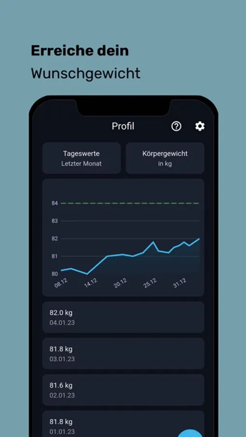Die App berechnet dir deine Wochendurchschnitte, um deinen Fortschritt noch genauer zu beobachten trotz Gewichtsschwankungen.