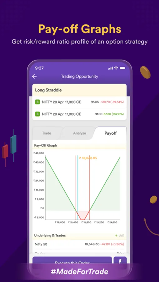 Pay-off Graphs: Real-time view of potential risk & reward for every Option trade