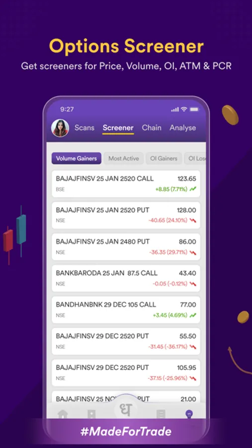Options Trader by Dhan allows you to execute f&o trades with ease by giving you access to incredible features. Get more margin benefits for buying futures, selling futures, buying options, and selling options! Analyze F&O contracts with screeners and scanners and place trades directly from the Option Chain, which makes Options Trader by Dhan not only the best app for options analysis but also for new-age F&O trading.