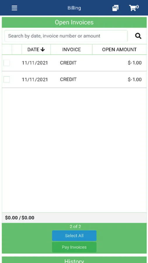 - Review invoices and account history.