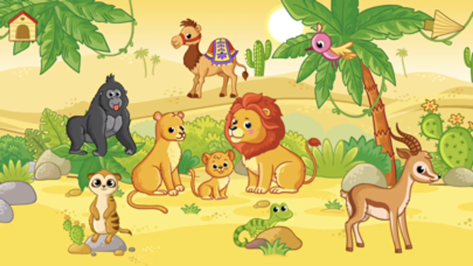 10. DESERT: lions, camel, antelope, gorilla, meerkat, lizard, bird.
