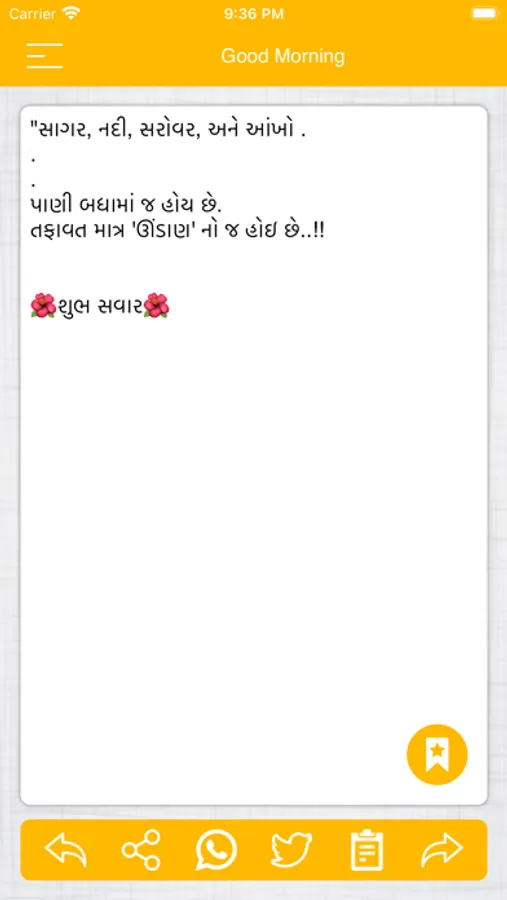 * Social Media Sharing: Share popular morning wishes instantly through popular social media platforms such as WhatsApp, Twitter, Facebook, and Instagram. Connect with a larger audience and inspire people around the world.