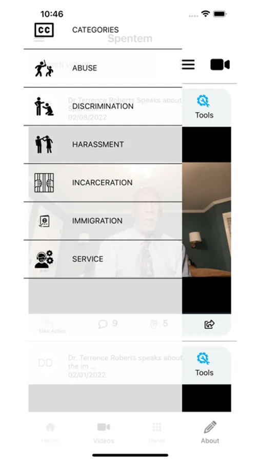 - Sign up and pick from five different categories (discrimination, harassment, abuse, incarceration, service)