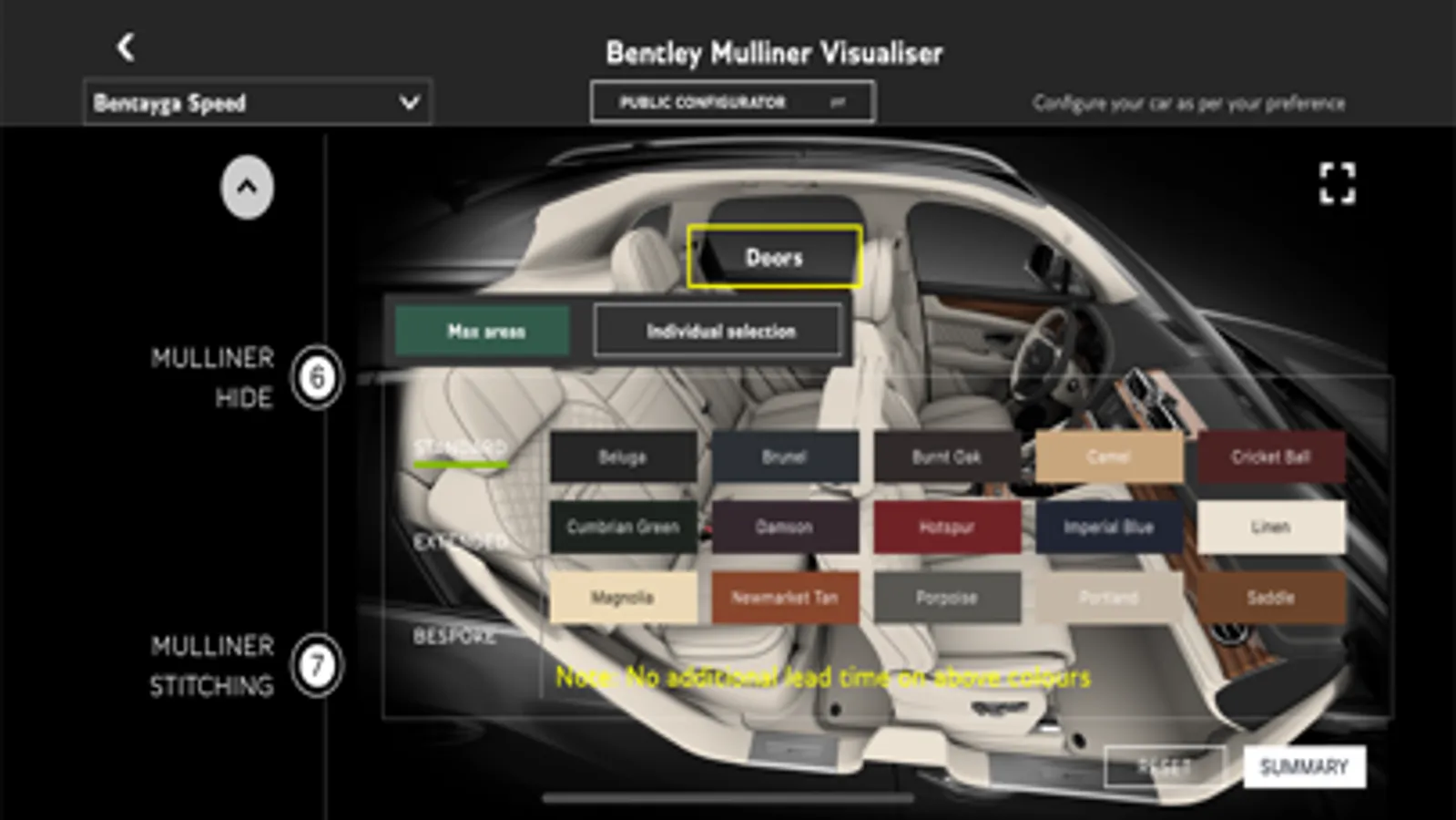- Included within the app is the Mulliner Visualiser, which offers users the ability to create their own distinctive, striking interiors.