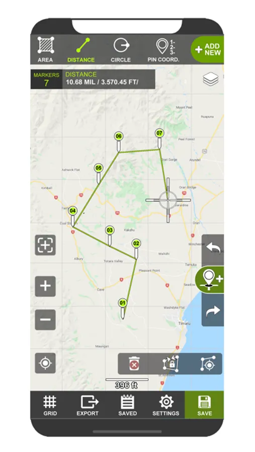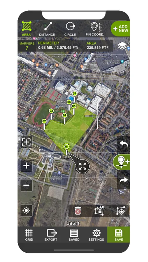 Tactical pro tool for measuring areas on the map. Place your points on the map and then calculate area between all point, calculate total Area of ant Route.