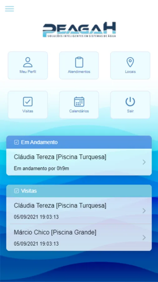 Aplicativo de uso interno para equipe da empresa Peagah para realizar o atendimento aos clientes com visitas técnicas e vistorias para tratamentos das piscinas.