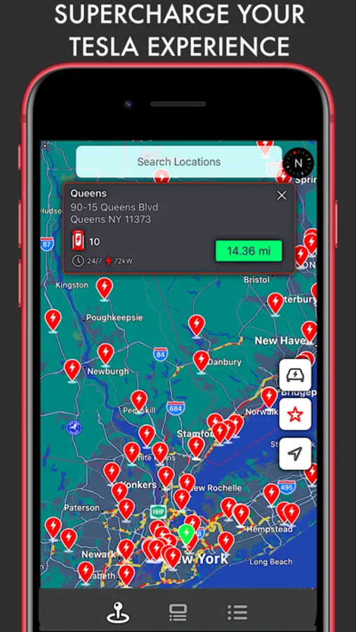 Find the nearest Tesla superchargers around your location or around any address, city or State you choose. Supercharge your Tesla experience with this intuitive and powerful app designed to help you better plan your trips and get rid of range anxiety.