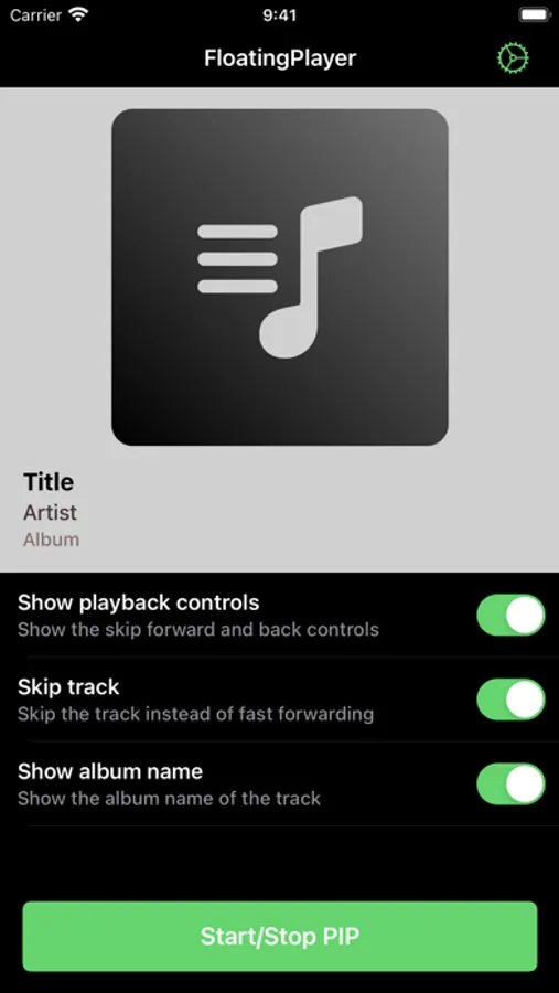 Open FloatingPlayer to connect to Spotify or Apple Music, change the player to your liking and press the start button. A floating player will be created which you can use anywhere to control your music.