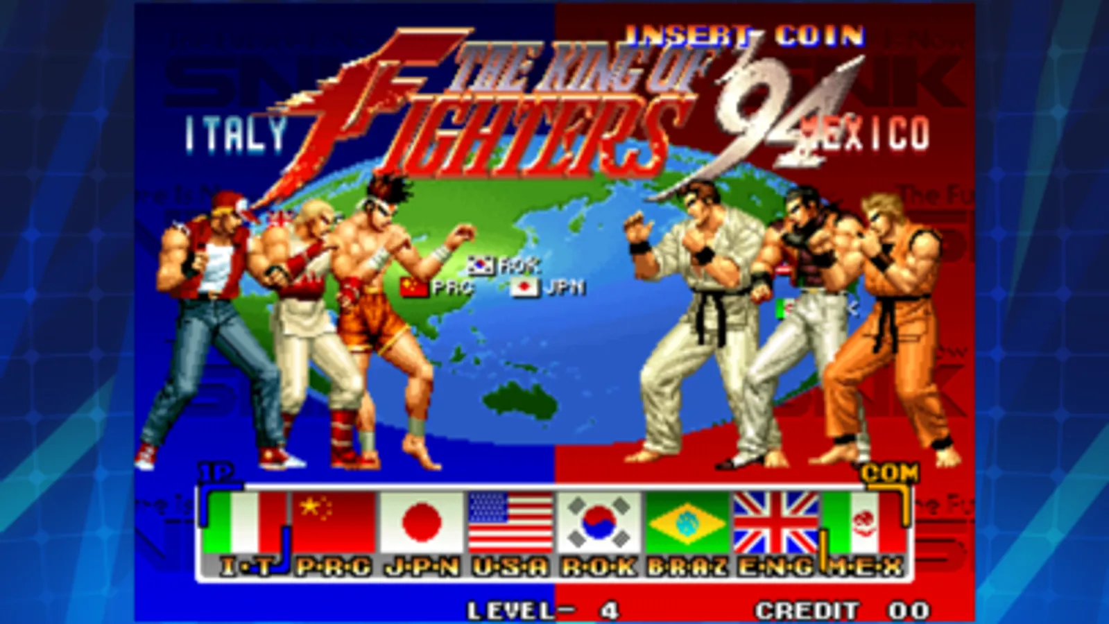 "THE KING OF FIGHTERS '94" originally launched for NEOGEO way back in 1994, injecting new life into the versus fighting game genre by mixing popular characters from SNK's "FATAL FURY," "ART OF FIGHTING", and "IKARI WARRIORS" franchises into one massive invitational hand-to-hand tournament.