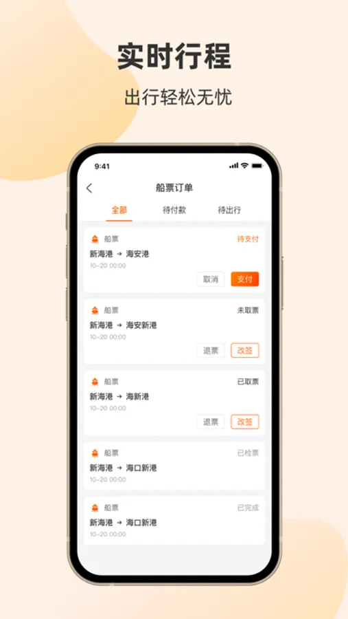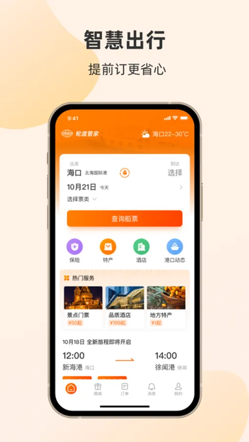 1、船票:支持在线购票,快速出票,提供个性化出行服务;