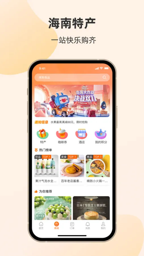 2、特产:提供海南当地多种特产自由选购,支持快递和上门取货