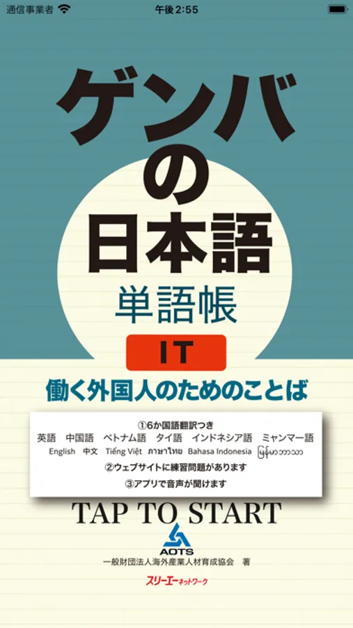 このアプリで、『ゲンバの日本語 単語帳 IT 働く外国人のためのことば』の見出し語の音声を聞くことができます。