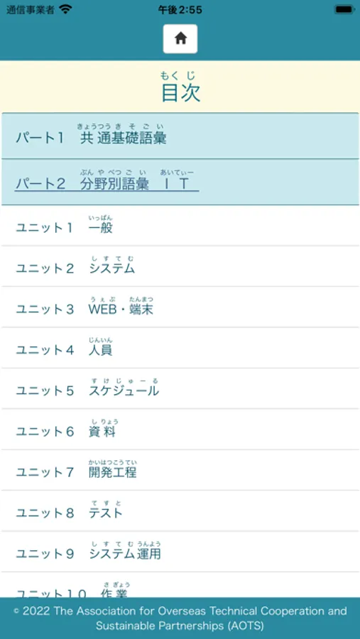 各パートのユニットごとに分かれた単語を覚えます。音声のボタンを押せば、発音も確認できます。