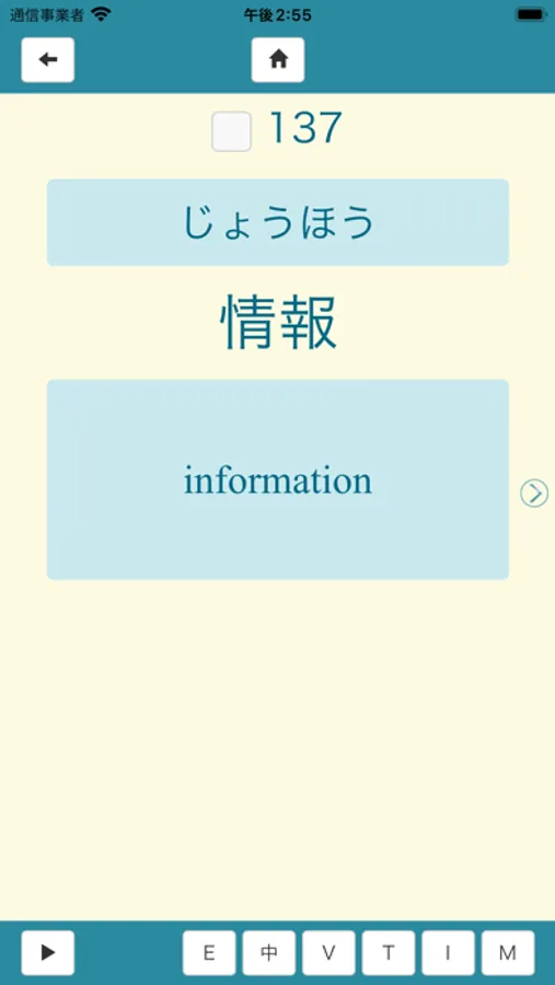 「I 単語」のチェックボックスにチェックを入れていない単語が並びます。まだ覚えていない単語を確認することができます。