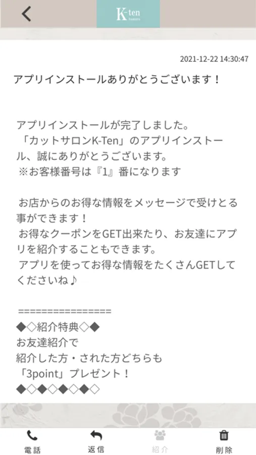 K-tenのアプリをSNSを通じてお友達に紹介する事ができます。
