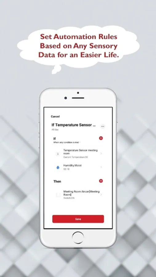 • Set automation rules for your house or office as per sensory information (i.e. turn on the lights upon movement detection)