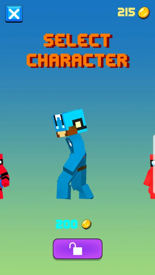Try to get the highest score and collect gold coins to unlock the characters.