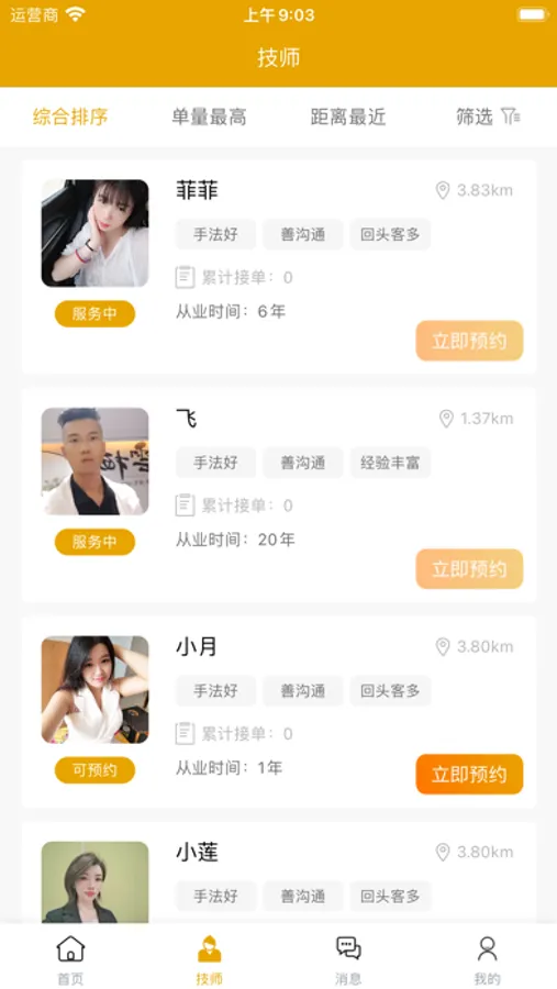 选择技师:您可通过图片、视频、技师个人介绍,选择您心仪的技师,24小时不打烊,享受上门按摩。