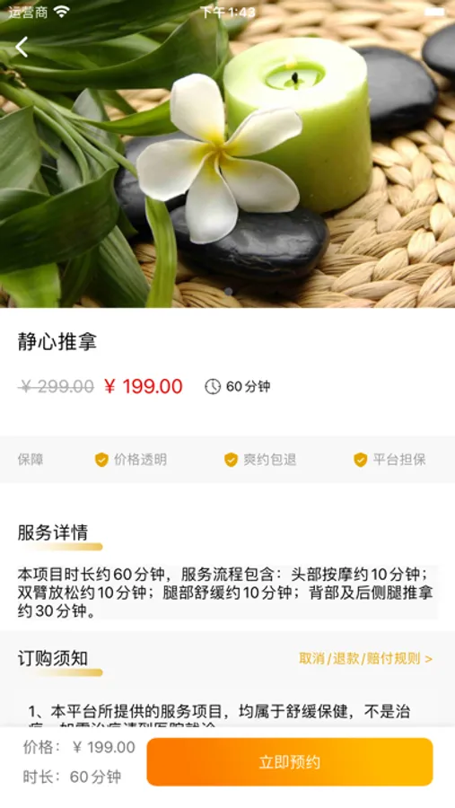 项目选择:当您有身体疲劳、亚健康等问题时,可根据症状,选择相应的项目,预约技师上门为您按摩。