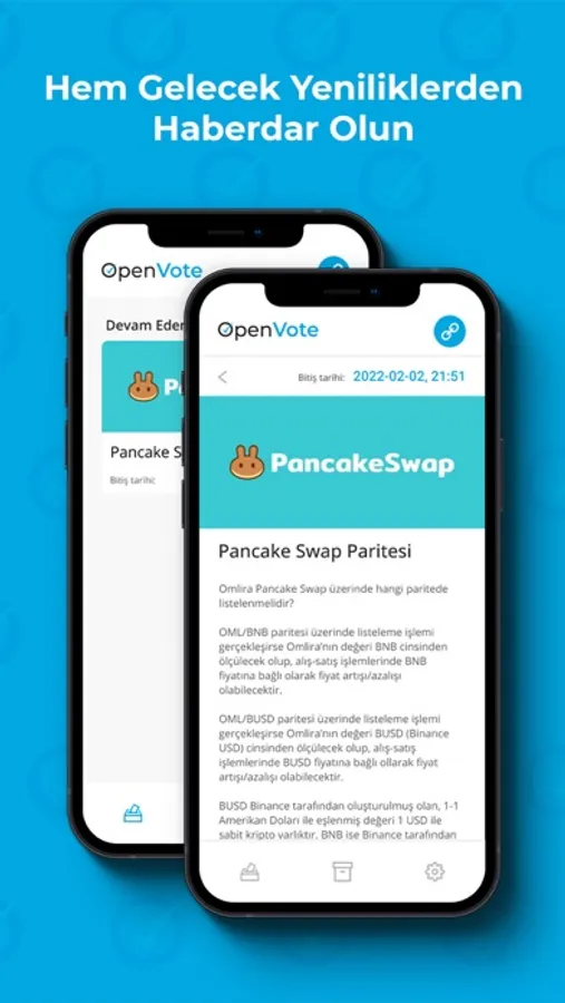 By voting on the ongoing proposals you can be a part of the Omlira community. By voting on Open Vote you will be able to decide the fate of the Omlira project. Your votes are authenticated by the cryptographic signature you will be signing through the app during voting process and can't be altered. This way there are no spam or fake votes.