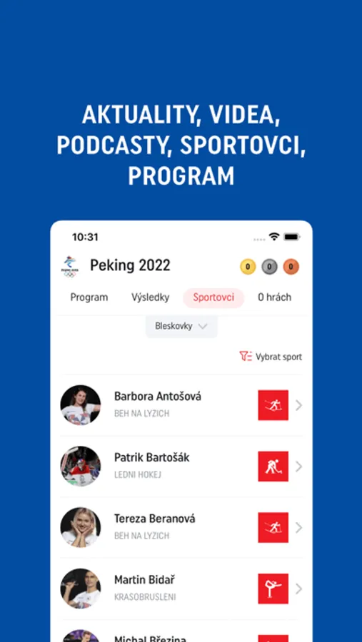 Sleduj nejnovější videa z místa, kompletní výsledky, program i aktuality přímo od sportovců. Užij si olympiádu na maximum a buď u novinek jako první.