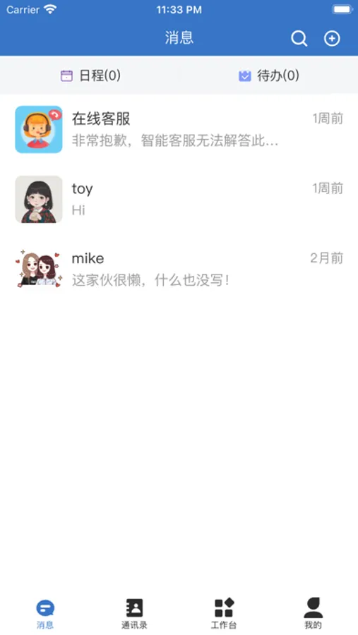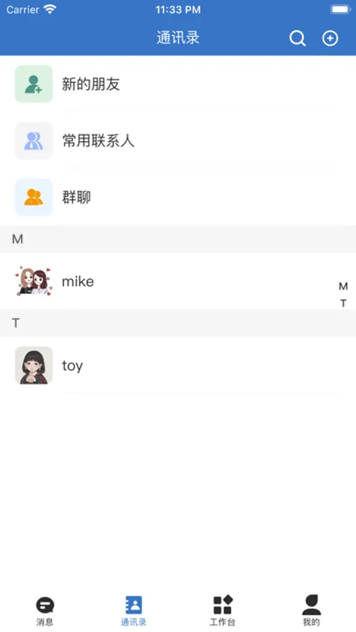 I聊工作是专为办公人群搭建工作内部使的App,它具有添加同事,私信同事,组建内部小组的功能。
