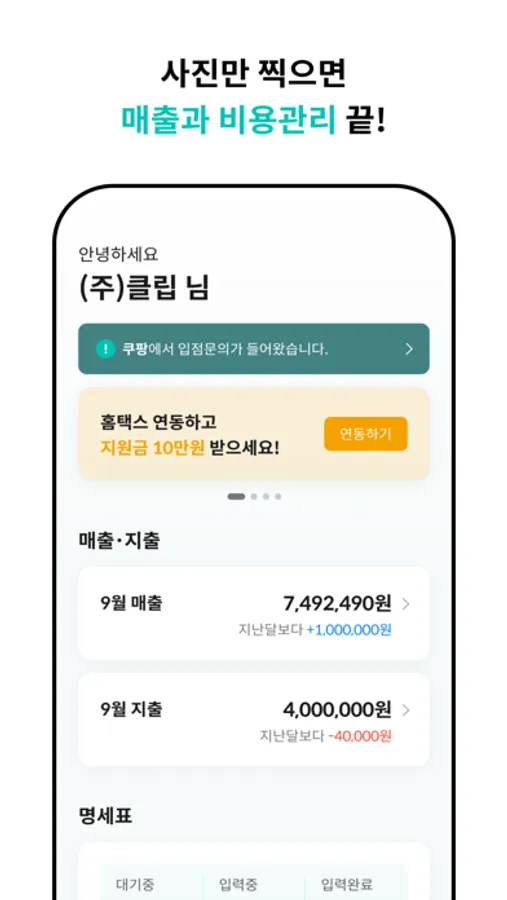 - 언제 얼마가 입금되는지 매출 입금 및 결제, 세금계산서 등 각종 재무현황을 달력에서 한눈에 관리할 수 있습니다.