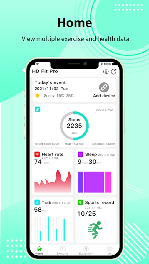 HD Fit Pro is a smart health APP that combines the data and services of Bluetooth wearable products. It can not only record diversified sports data records such as running, cycling, mountain climbing, etc. Step, sleep and other health data monitoring and management of your physical health. You can start recording your daily exercise at any time, and use your spare time to exercise after work, helping you develop a good healthy routine. Enjoy your healthy life.