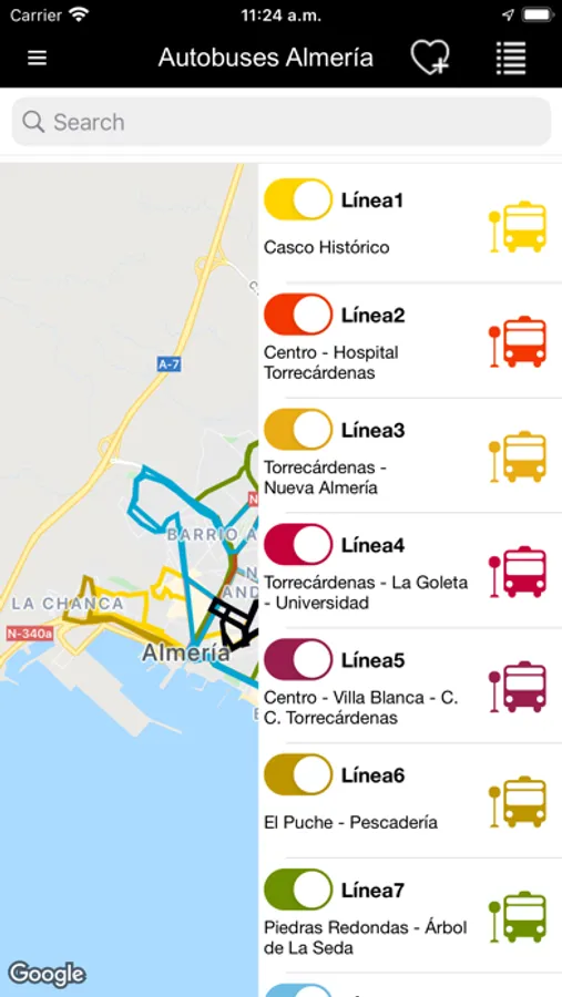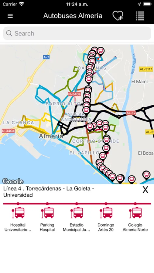 Esta aplicación surge con intención de gestionar más fácilmente y de manera interactiva la información de la red de autobuses de Almería y sus horarios.