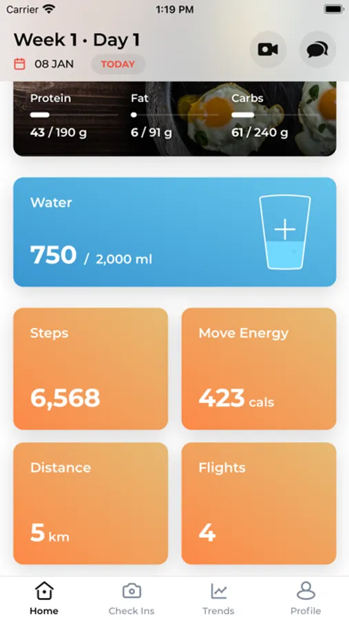 The app integrates with Apple Health to show your daily activity - distance, steps, active energy, and flights to help you better achieve your goals.