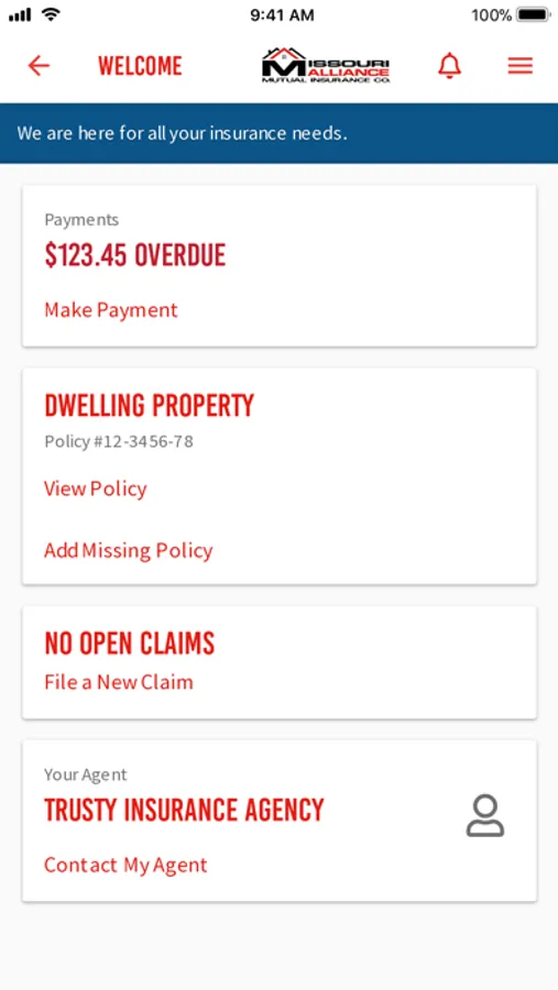 * Receive notifications and messages from Missouri Alliance Mutual Insurance