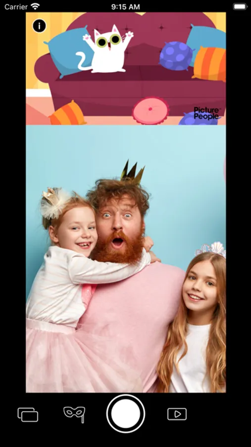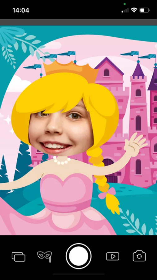 Due to integrated animation within the app, the PicturePeople Kids Cam holds the attention of your children – so that you can capture the moment and take the perfect selfie. But the Kids Cam can do even more. Let your kids be the photographer with your phone and discover unique point of views. Specially designed photo templates enable your children to slip into different characters and that way become a prince or princess for instance.