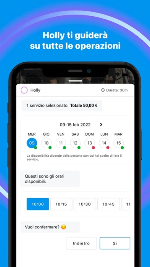 - Holly ti guiderà nella scelta dei servizi e ti proporrà lo staff disponibile.