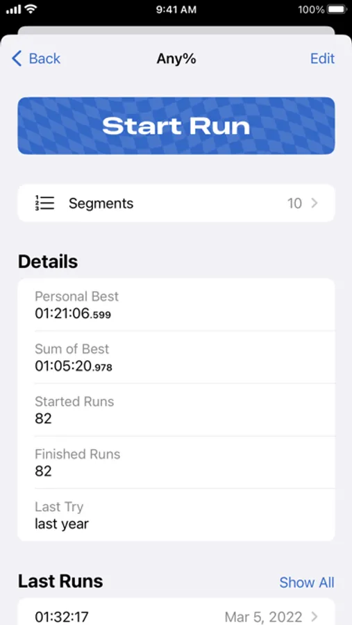 The app saves all you runs times, allowing you to come back to and analyse any previous run.