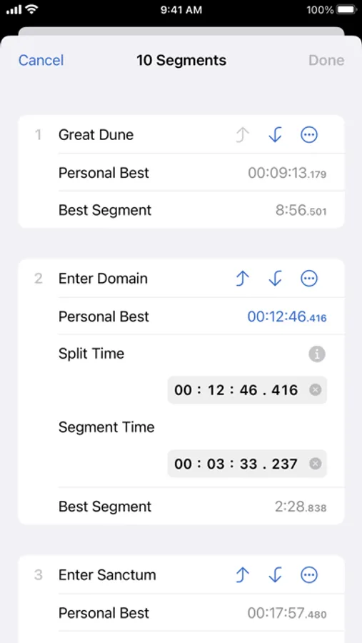 For each category, show the segments and their time, and modify them with an intuitive user interface.