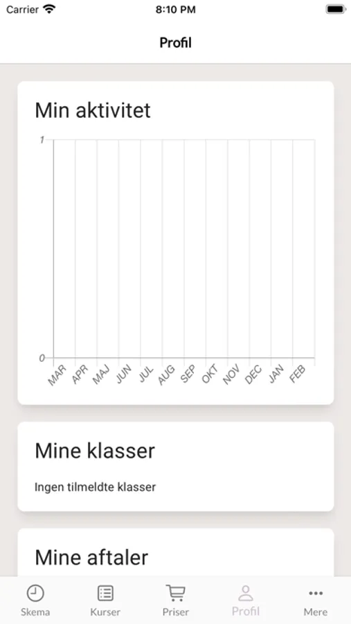 Du får et overblik over alle dine bookinger og træningshistorik.