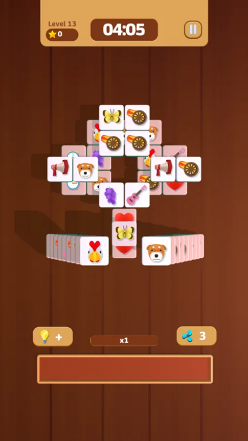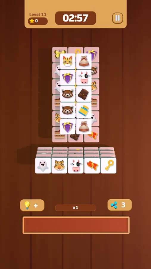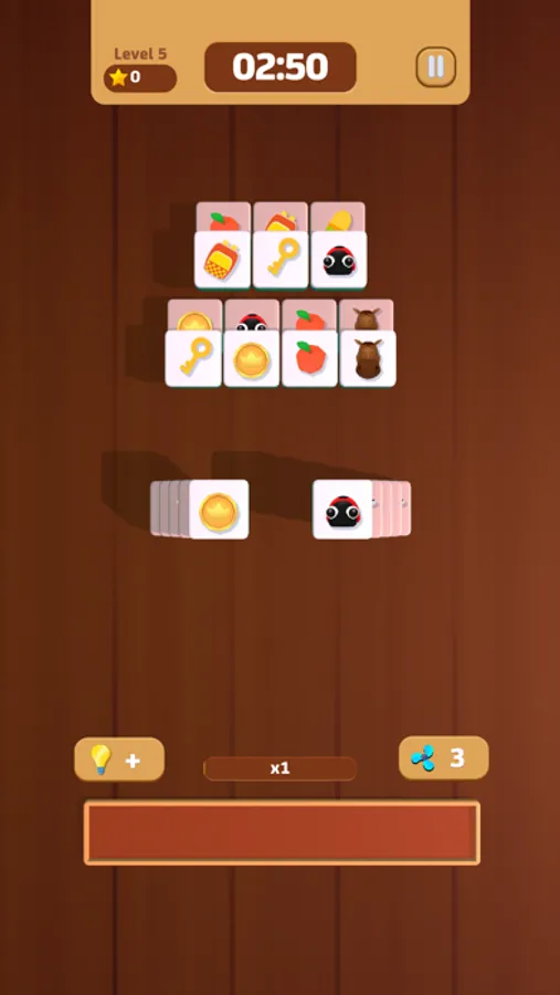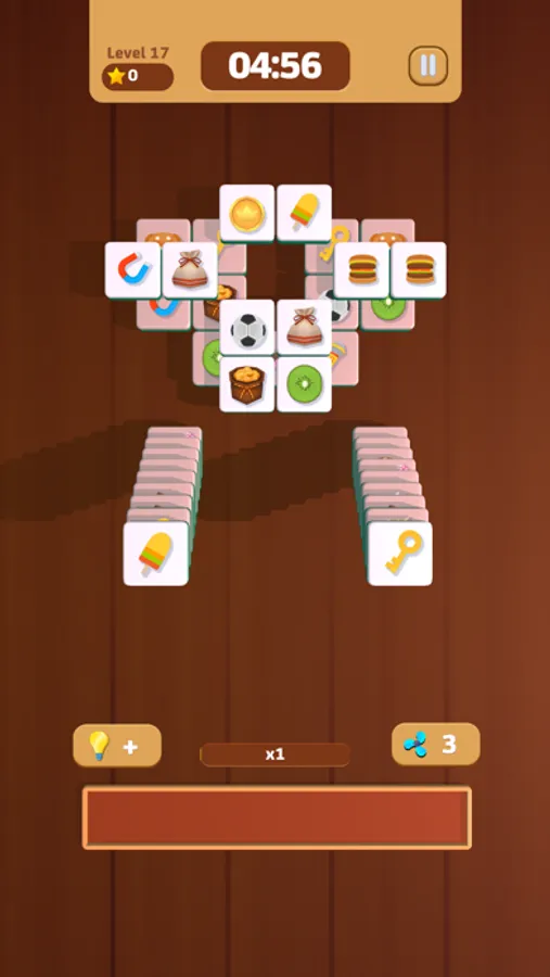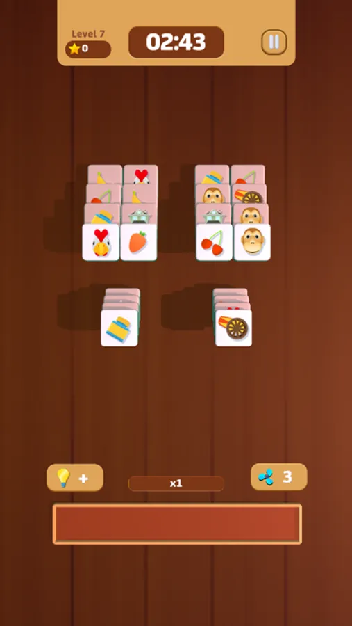 Tap on the tiles and place 3 identical tiles on the scroll to eliminate them. After eliminating all the blocks on the field, the game wins! If there are more than 7 blocks on the scroll, the game will end.