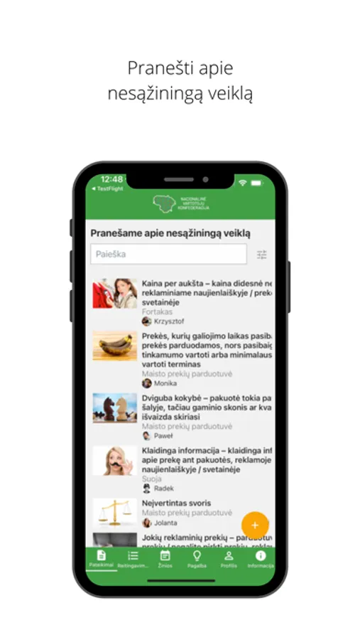 Mes nenorime, kad pardavėjai mus apgaudinėtų. Nesąžininga komercinė veikla – nepaisant draudimo ją vykdyti – mūsų rinkoje nuolat pasitaiko. Programa VARTOTOJAI TIKRINA padės mums patiems apsisaugoti nuo suklaidinimo ir tuo pačiu perspėti kitus vartotojus apie nesąžiningą komercinę veiklą. Skelbime ar ant gaminio pakuotės matote ką nors įtartino – praneškite mums ir kitiems vartotojams.